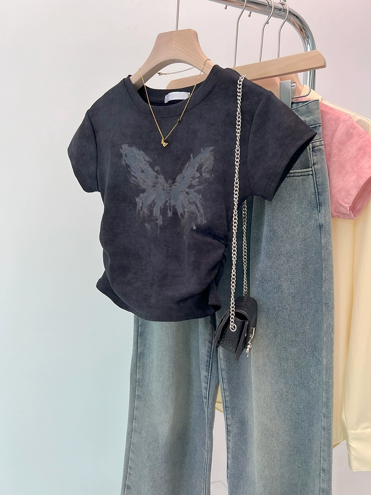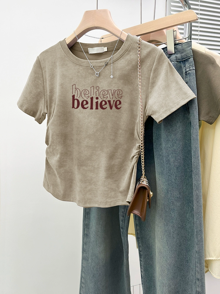 | nameOriginal | Irregular hem slim fit niche waisted short-sleeved T-shirt |