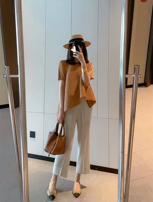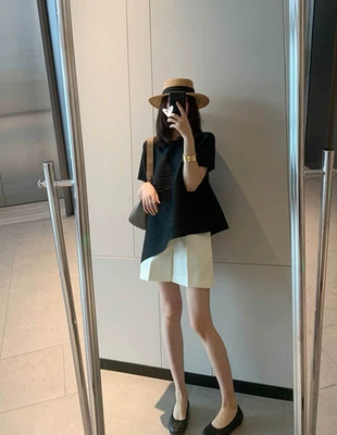 | nameOriginal | Irregular hem textured short-sleeved loose top |
