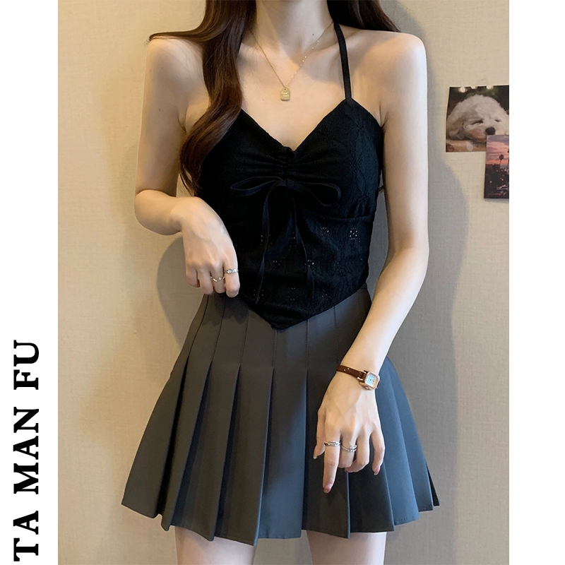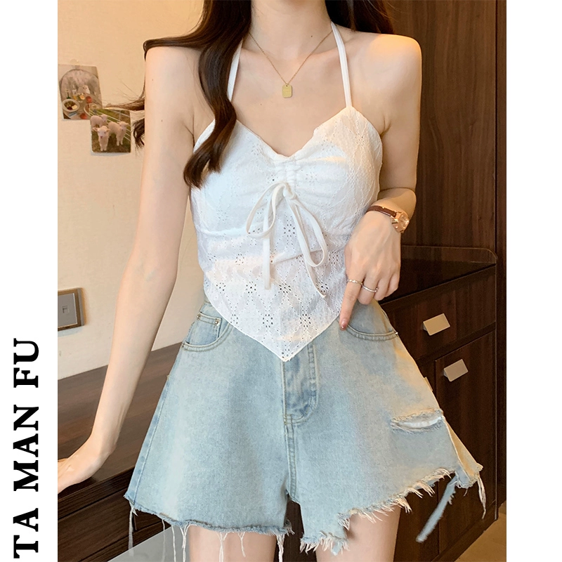 | nameOriginal | Irregular hem white camisole for women summer with breast pads sexy inner short style beautiful back drawstring halter top |