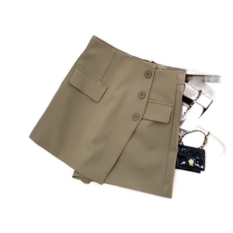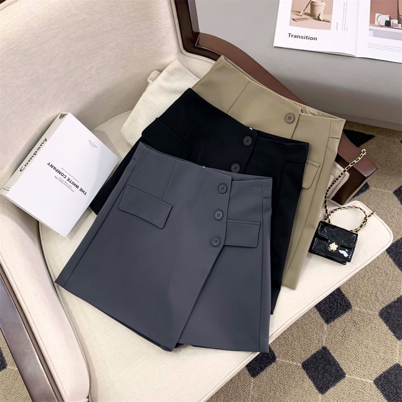 | nameOriginal | Irregular High Waist Suit Short Pants Skirt Women's Spring and Autumn 2024 New Korean Style Button Embellished A- Line Wide Leg Skirt Pants |
