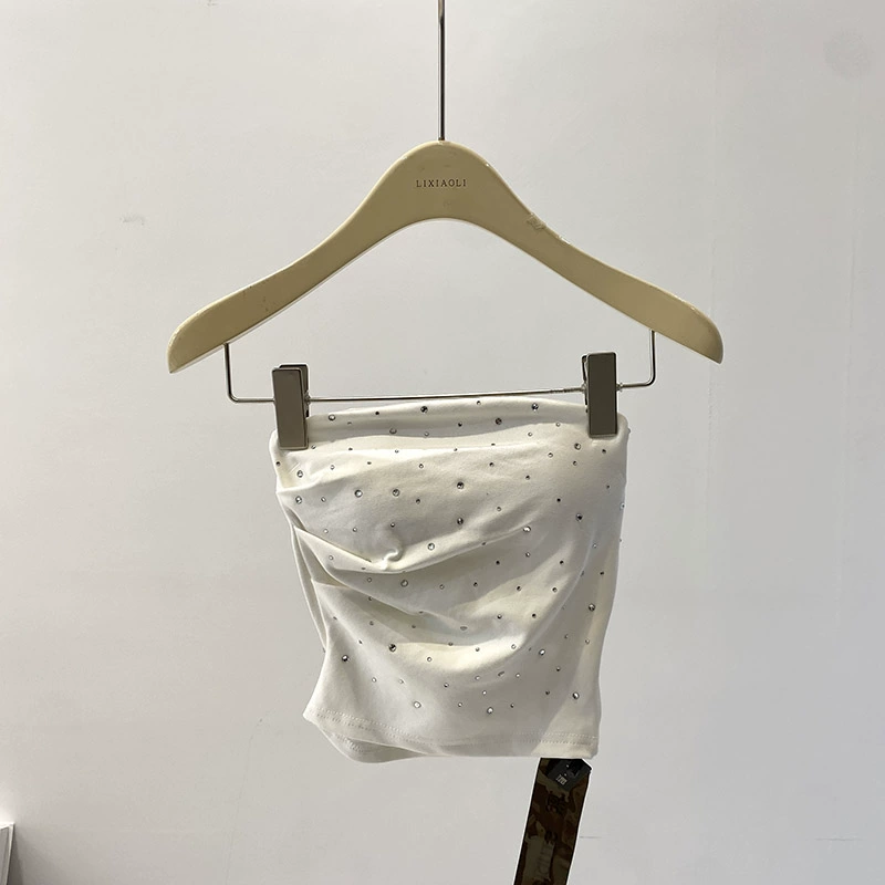 Irregular hot diamond lace gray sleeveless tube top for women 2024 summer new style versatile slim short vest top