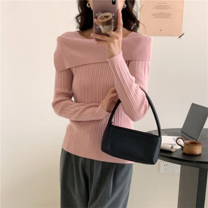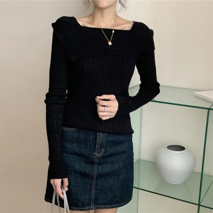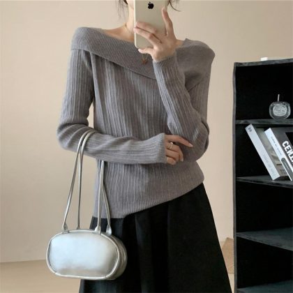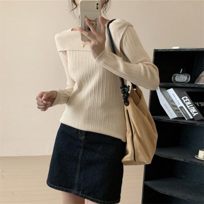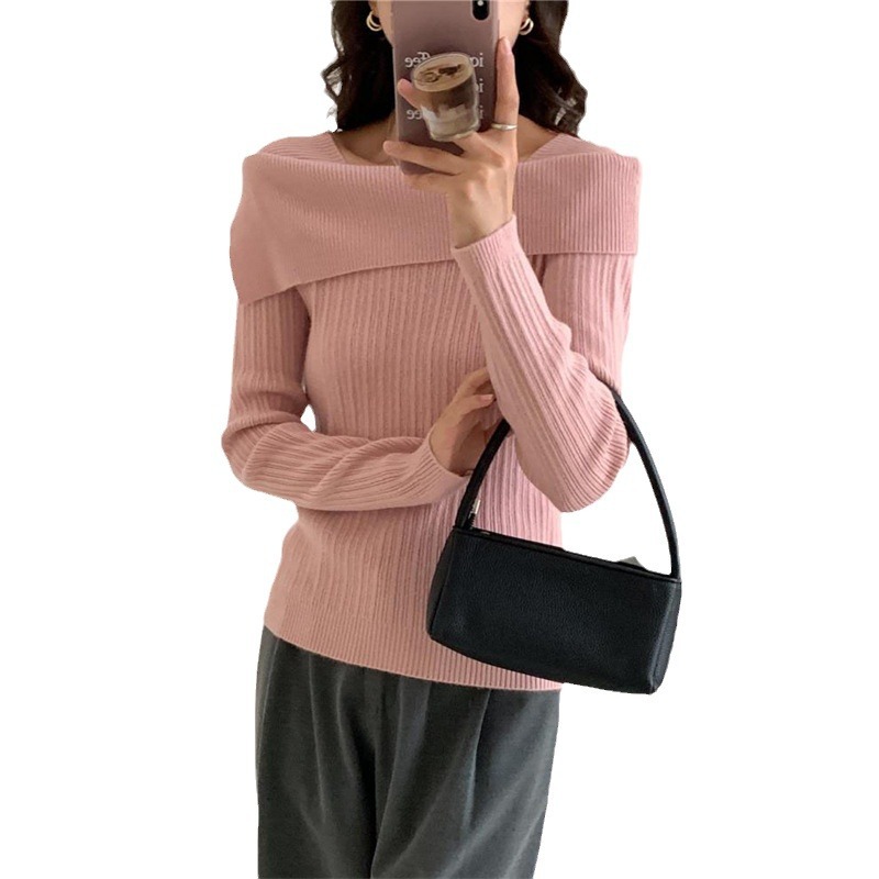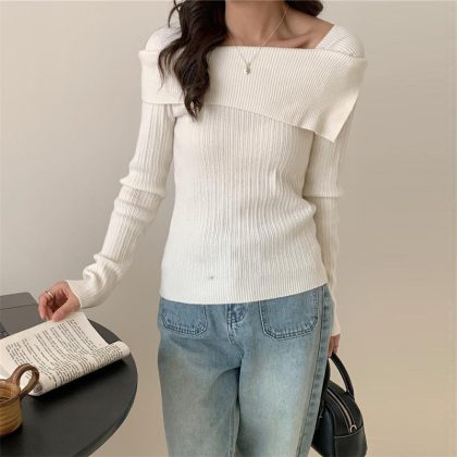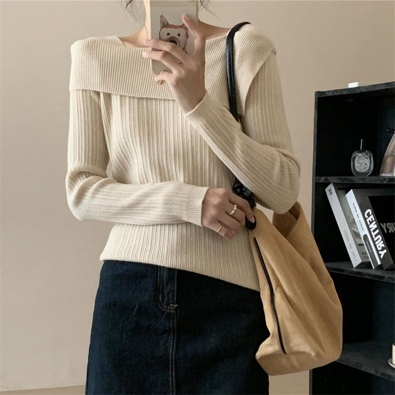 | nameOriginal | Irregular inner sweater women's French high waist collarbone top 2023 autumn and winter new off-shoulder knitted bottoming shirt |