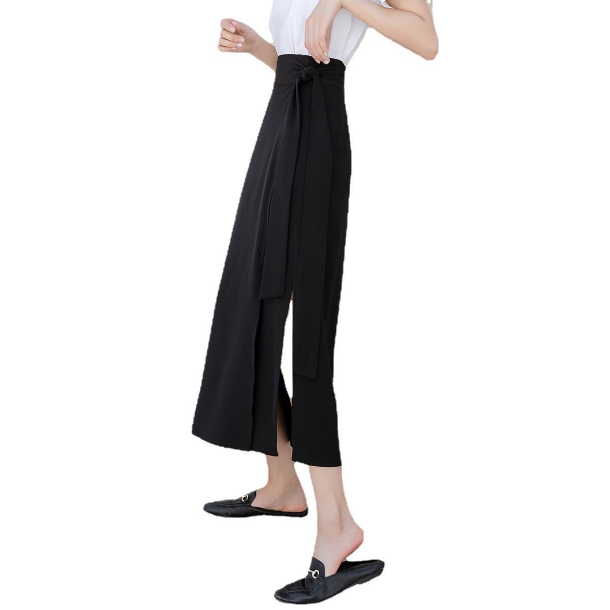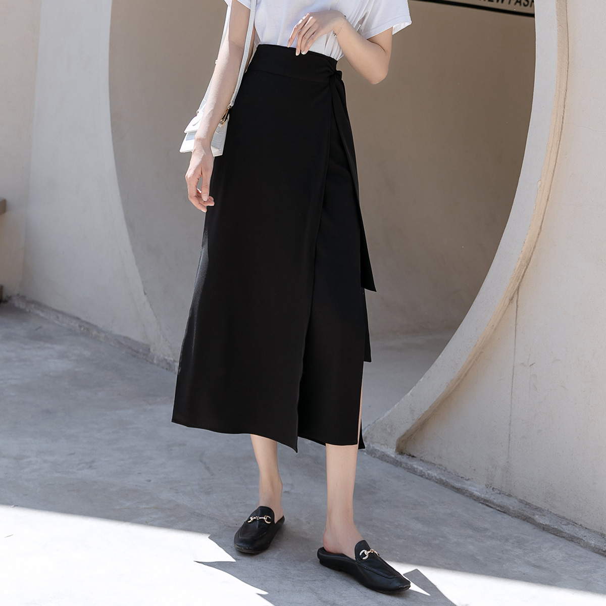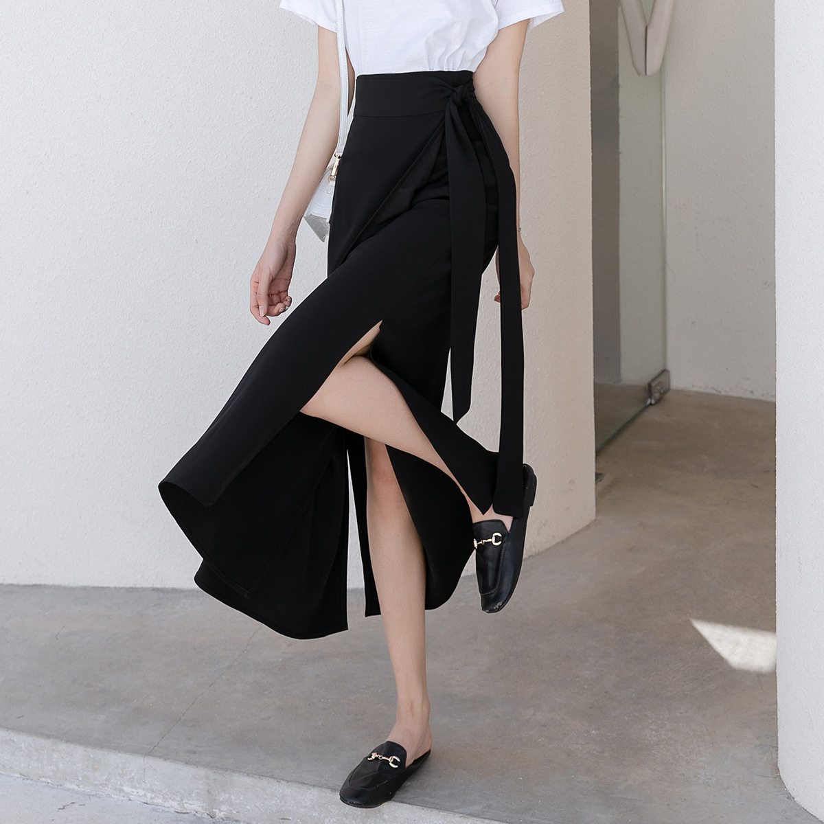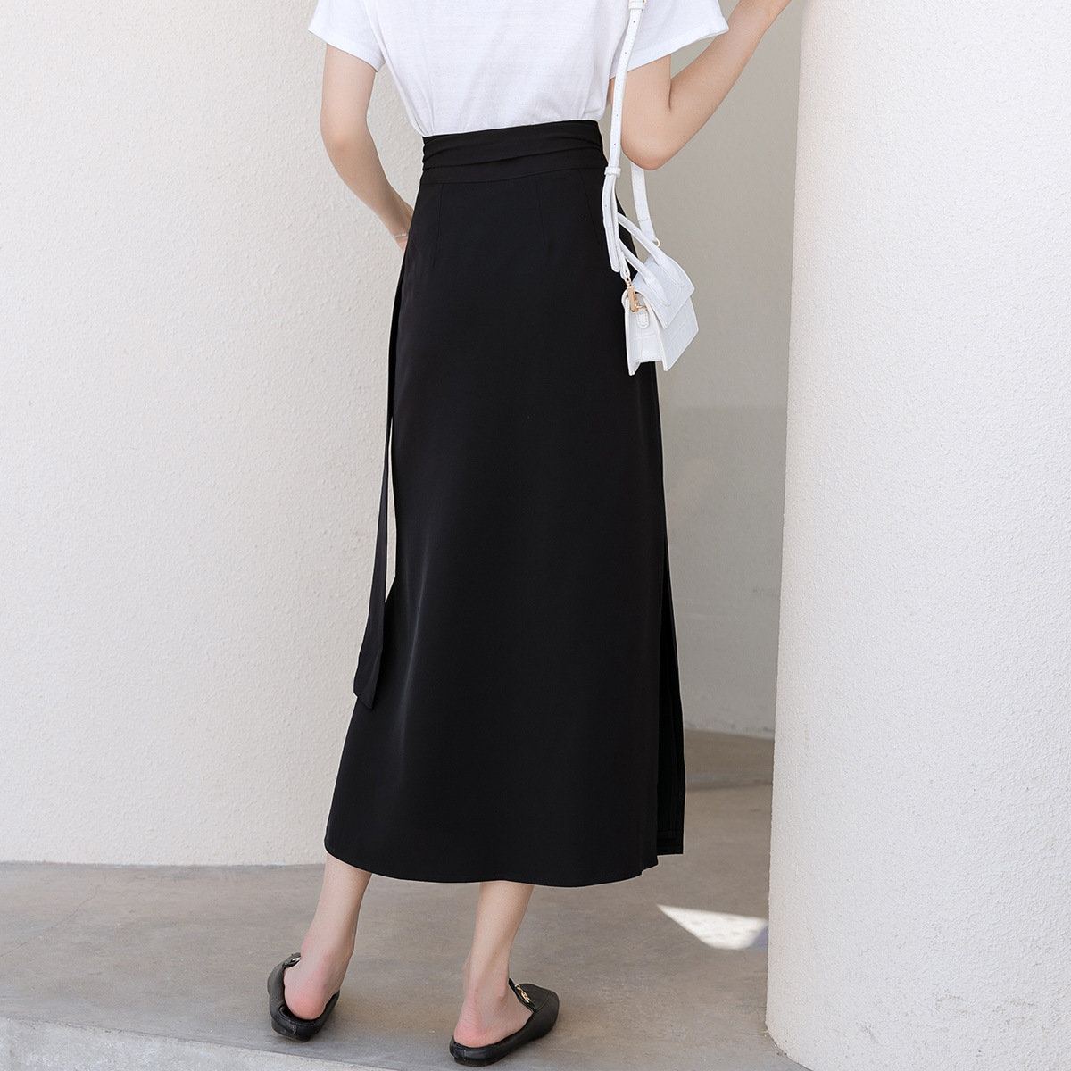 | nameOriginal | Irregular lace-up long Korean style elegant commuter high waist slimming black skirt |