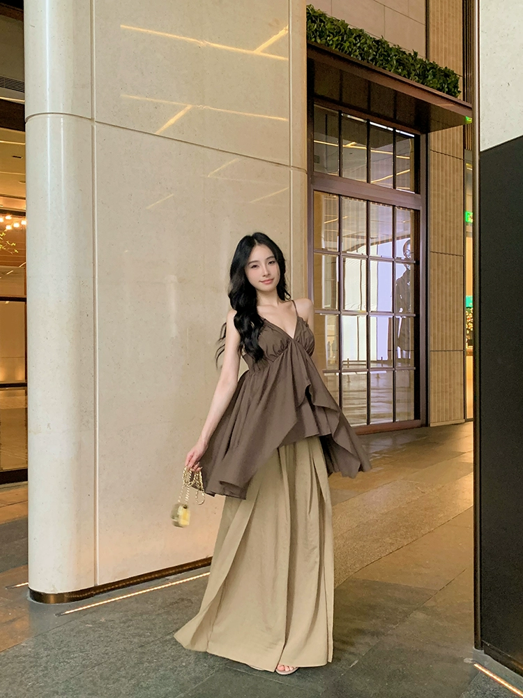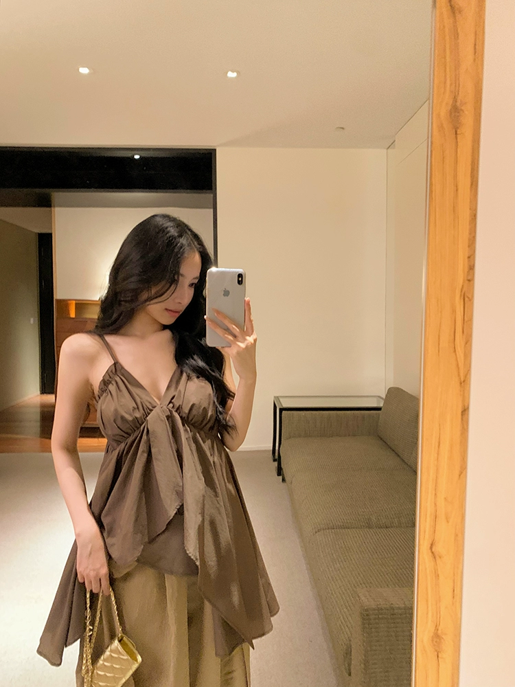 Irregular loose niche pure desire sleeveless v-neck suspender belt
