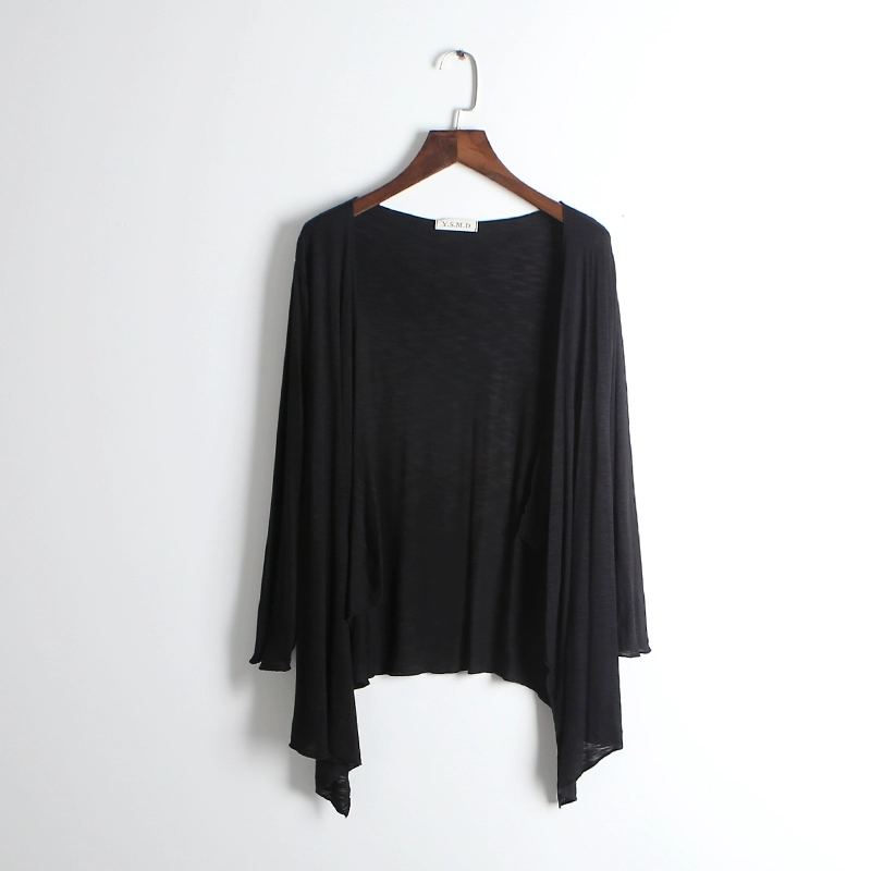 Irregular mid -long bamboo cotton jacket loose cardigan