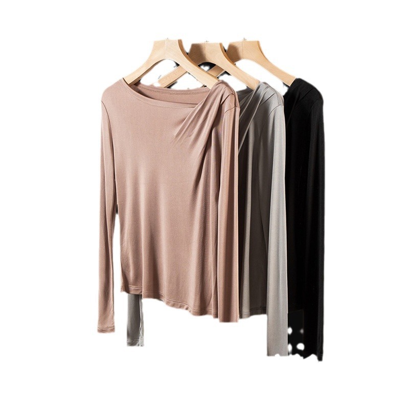 | nameOriginal | Irregular Neck Silk Base Shirt Women's New Solid Color Niche Skin-Friendly Silk Long-Sleeved T-Shirt Inner Knit |