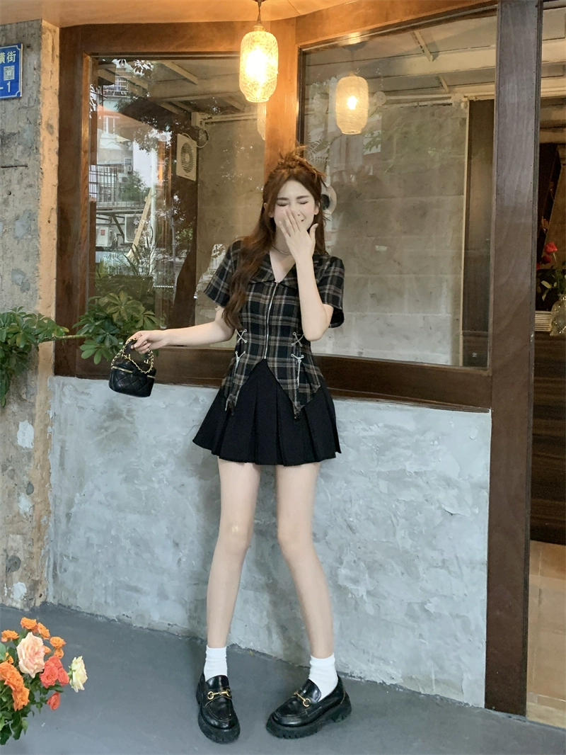 | nameOriginal | Irregular plaid niche women's summer fat polo shirt |