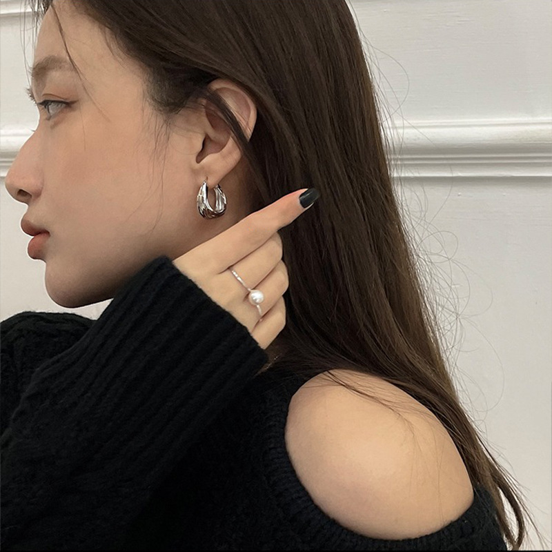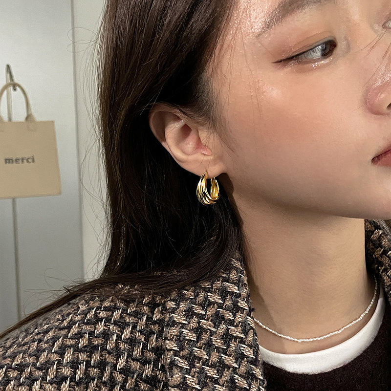 Irregular pleated earrings women's simple metal lava earrings elegant geometric plain ring earrings 2023 New