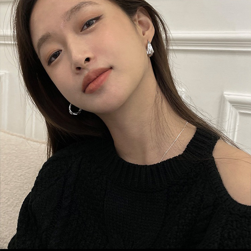 Irregular pleated earrings women’s simple metal lava earrings elegant geometric plain ring earrings 2023 New