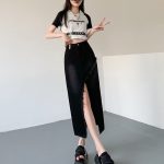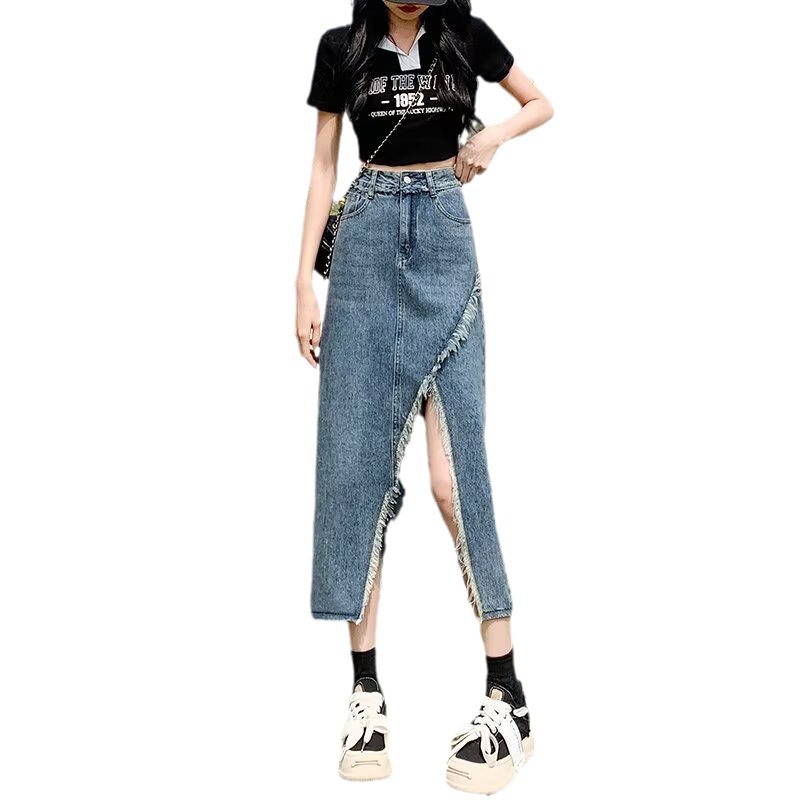 Irregular Retro High Waist Split Denim Skirt Women’s Mid-length Slimming A- line Fur Hip Long Skirt Spring