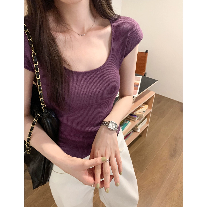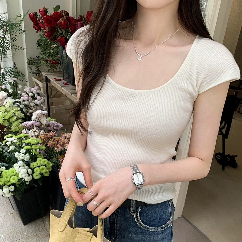 | nameOriginal | Irregular square neck, curved hem, Korean style hot girl short sleeves |