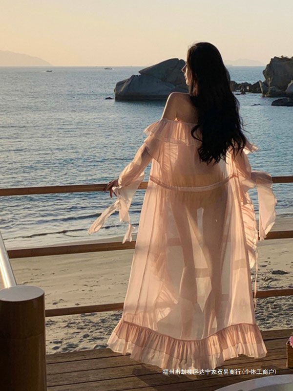 | nameOriginal | Island Holiday Wear Sunscreen Cardigan Women's Bikini Outer Wear Coat Blouse Tulle Long Seaside Beach Dress for Summer |