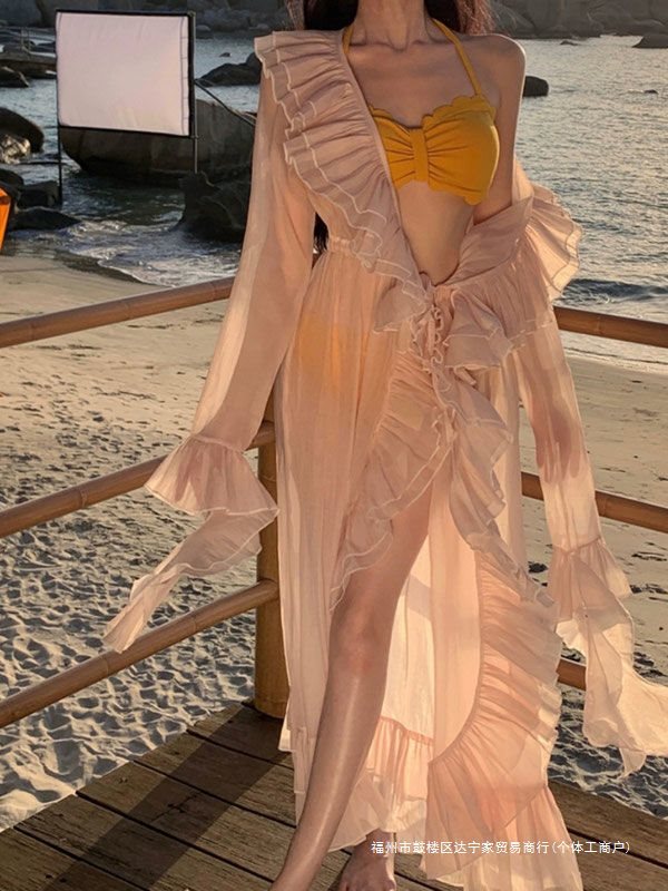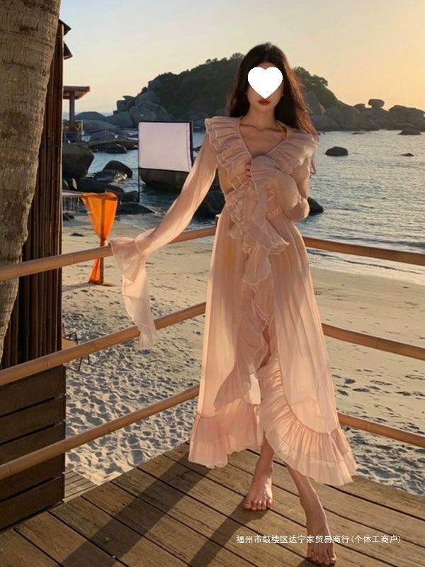 | nameOriginal | Island Holiday Wear Sunscreen Cardigan Women's Bikini Outer Wear Coat Blouse Tulle Long Seaside Beach Dress for Summer |