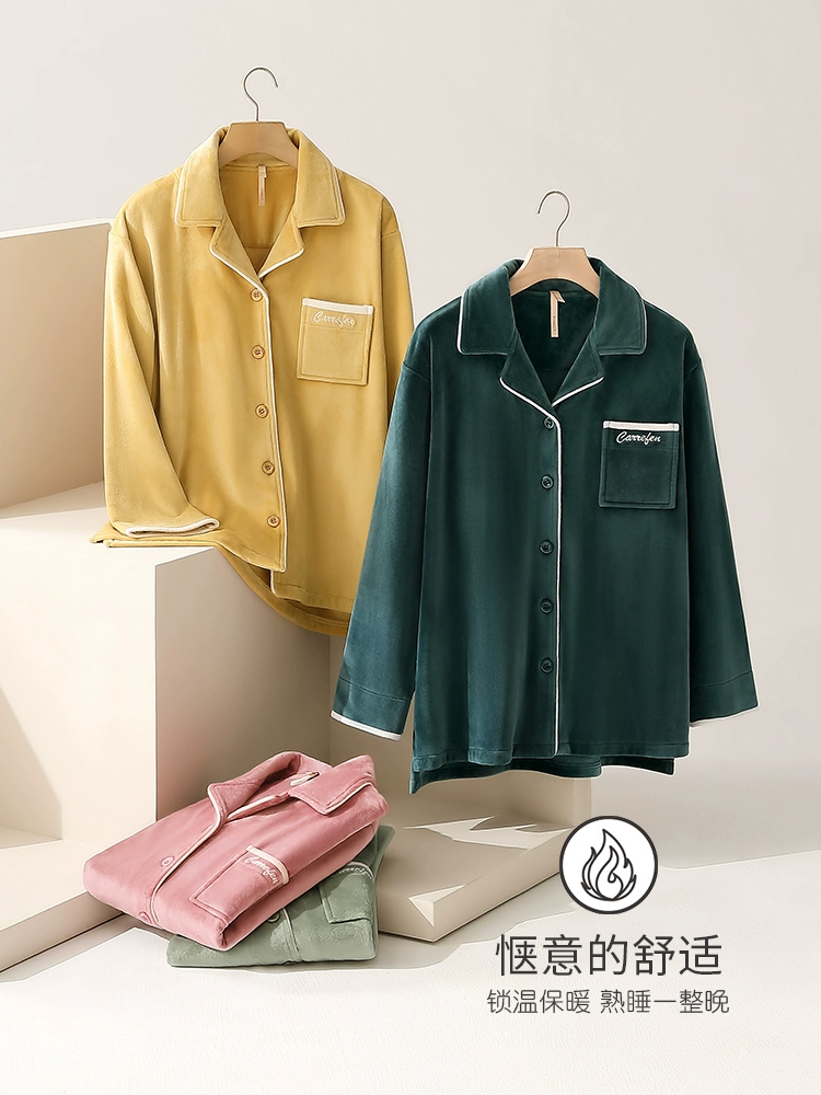 | nameOriginal | [Island Velvet] Carrefen Pajamas Women's Autumn and Winter Style Winter Flannel Plus Velvet Thickened Coral Velvet Home Clothes |