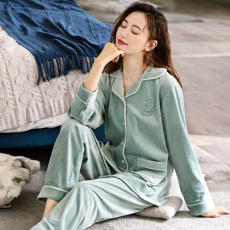 | nameOriginal | Island velvet pajamas for women spring and autumn thickened plus velvet warm coral velvet flannel autumn and winter thin home wear set  |