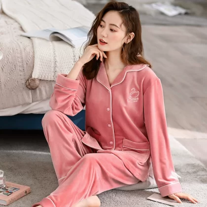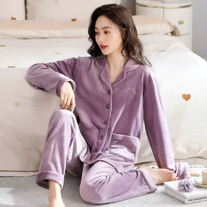 | nameOriginal | Island velvet pajamas for women spring and autumn thickened plus velvet warm coral velvet flannel autumn and winter thin home wear set  |