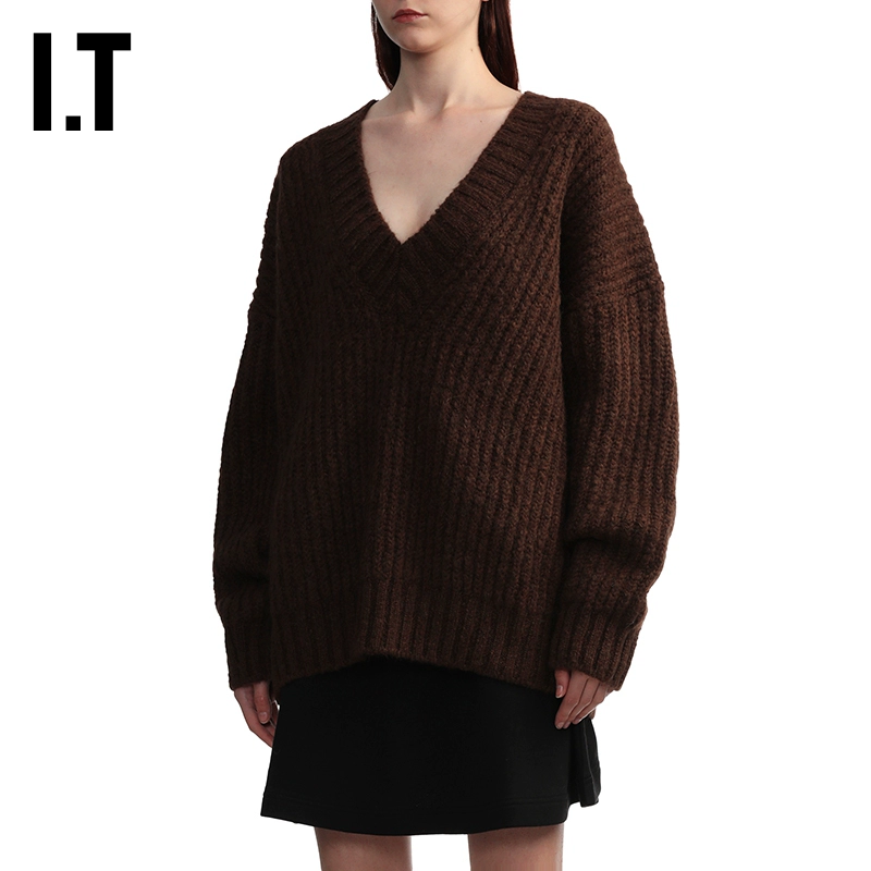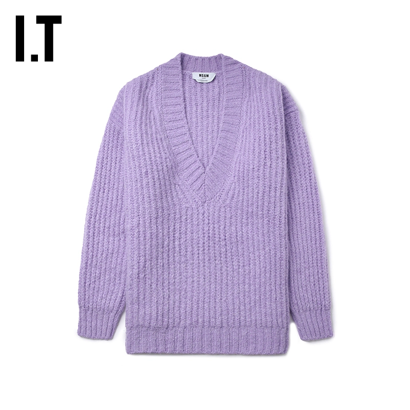 | nameOriginal | IT MSGM women's silhouette V-neck sweater new fashion lazy loose solid color coarse knit sweater M2092BL |