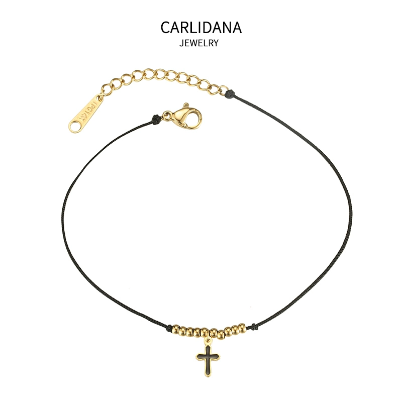 Italian black rope cross string bracelet 14K gold -plated hand -woven hand rope DIY cross bracelet