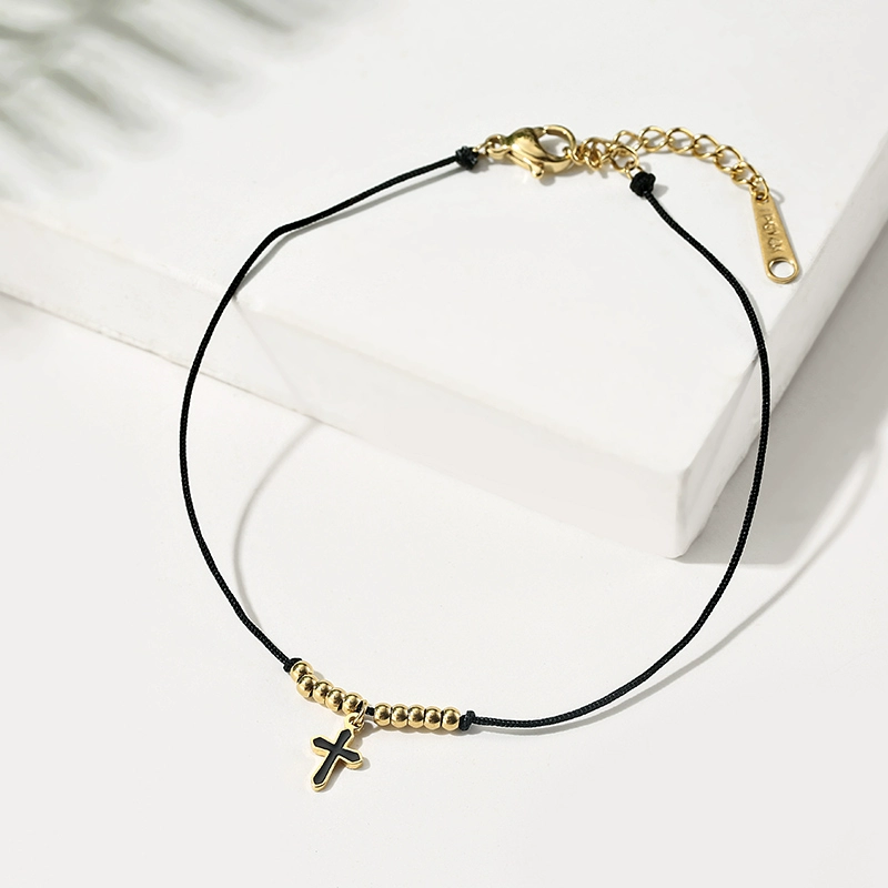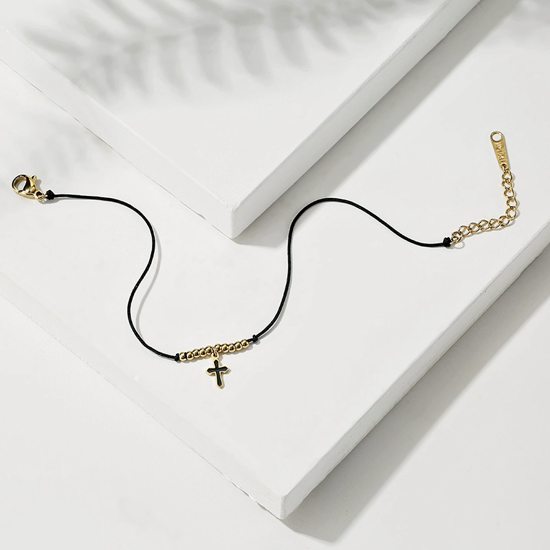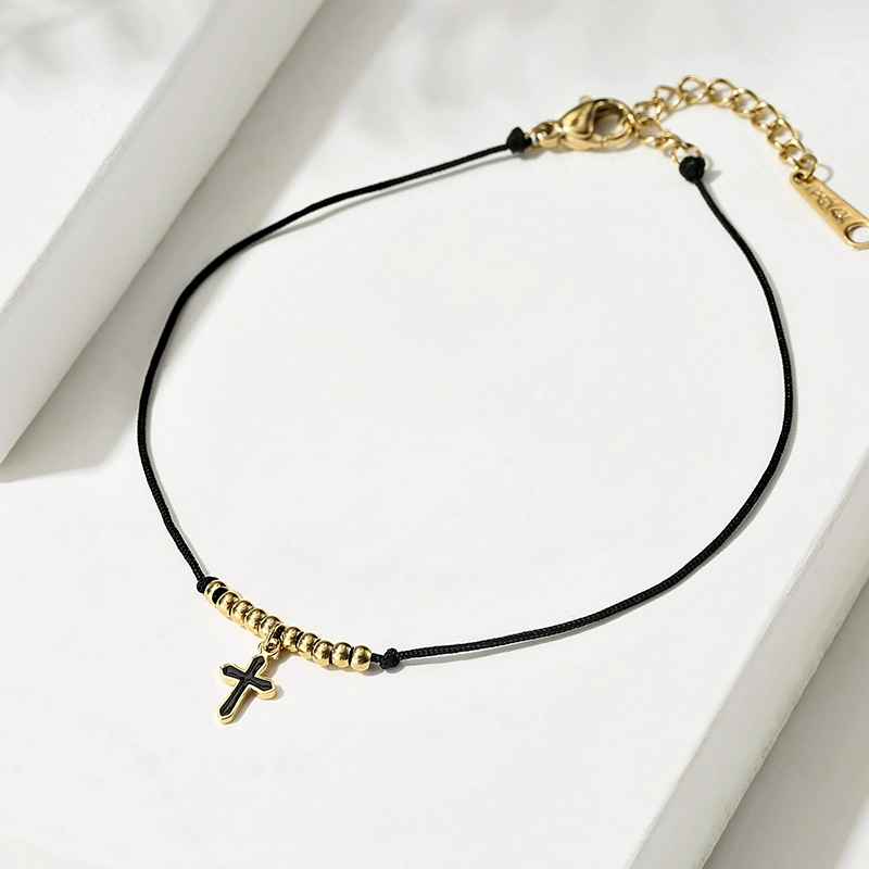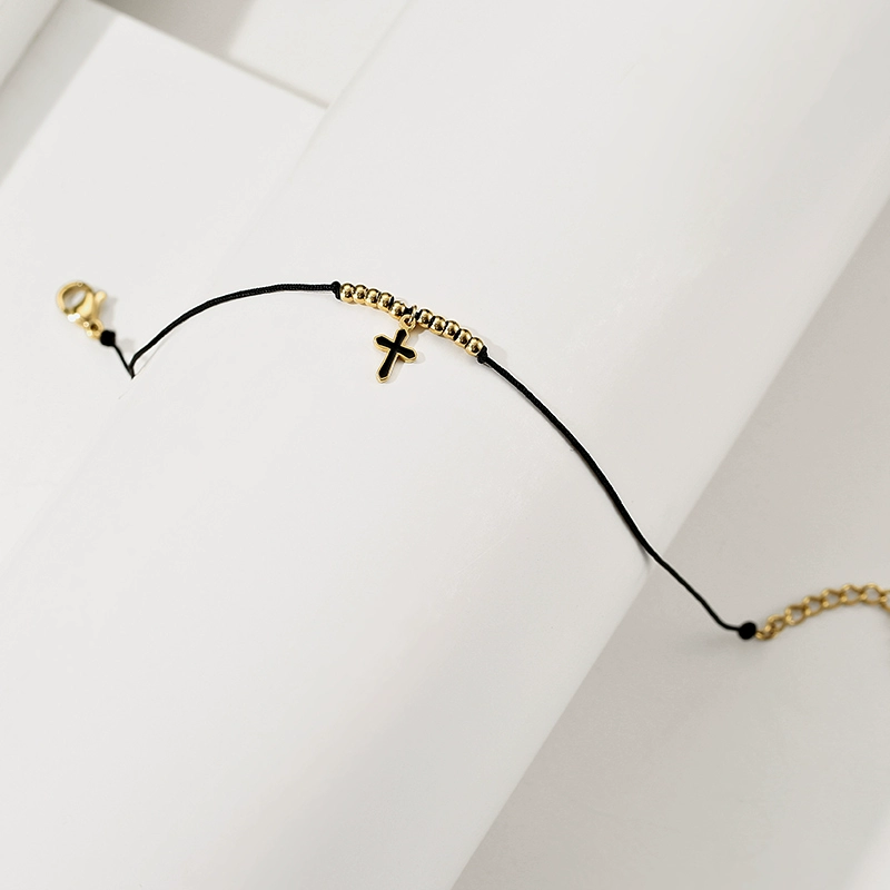 Italian black rope cross beaded bracelet 14K gold-plated hand-woven hand rope DIY cross bracelet
