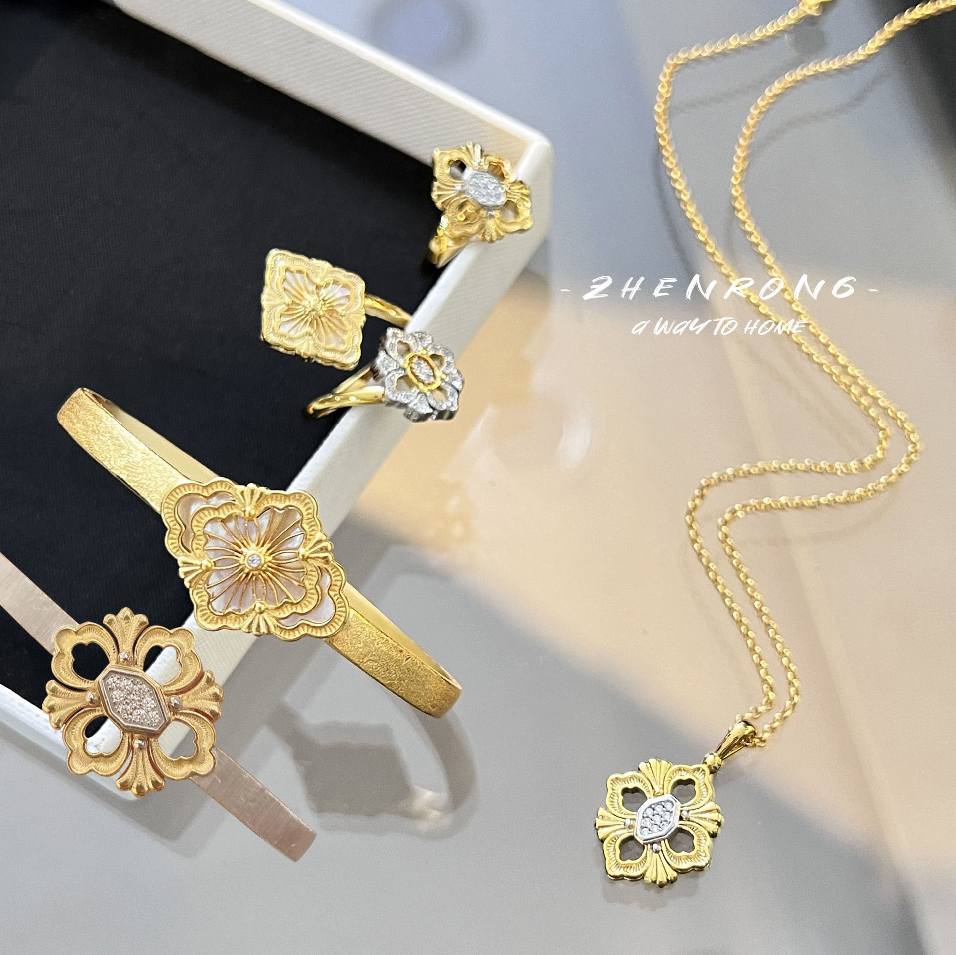 | nameOriginal | Italian drawing craft woven carved gold cross flower ring diamond flower necklace natural fritillary bracelet for women |