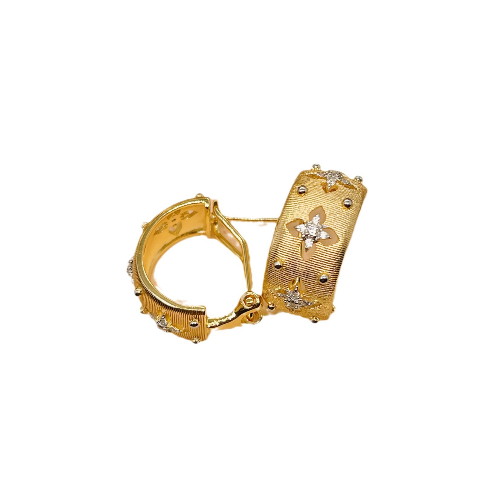 | nameOriginal | Italian Handmade Brushed Palace Style Double Color Gold Craft Cloth Qi Lati Ring Real Gold Plated French Earrings |