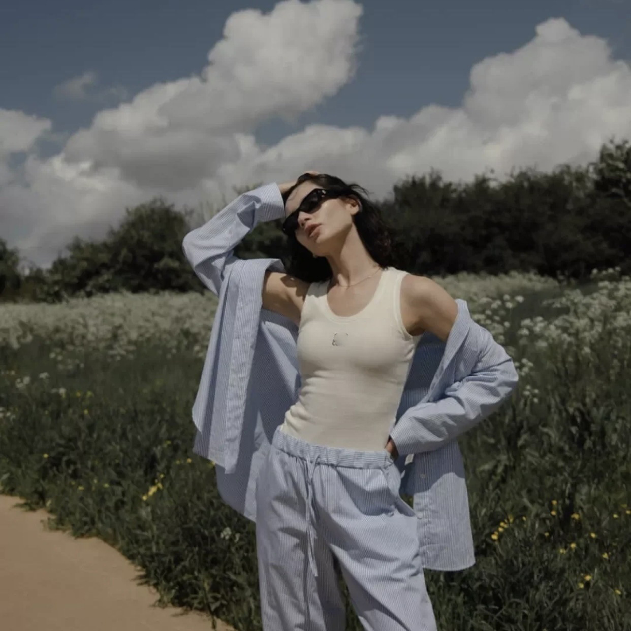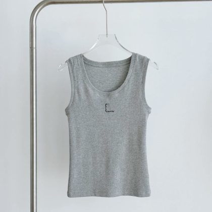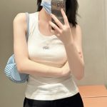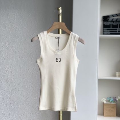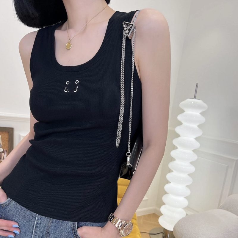 Italian LW Summer New Embroidered Knitted Sleeveless Women’s Vest Sling Tight Inner All-match Micro-blemish