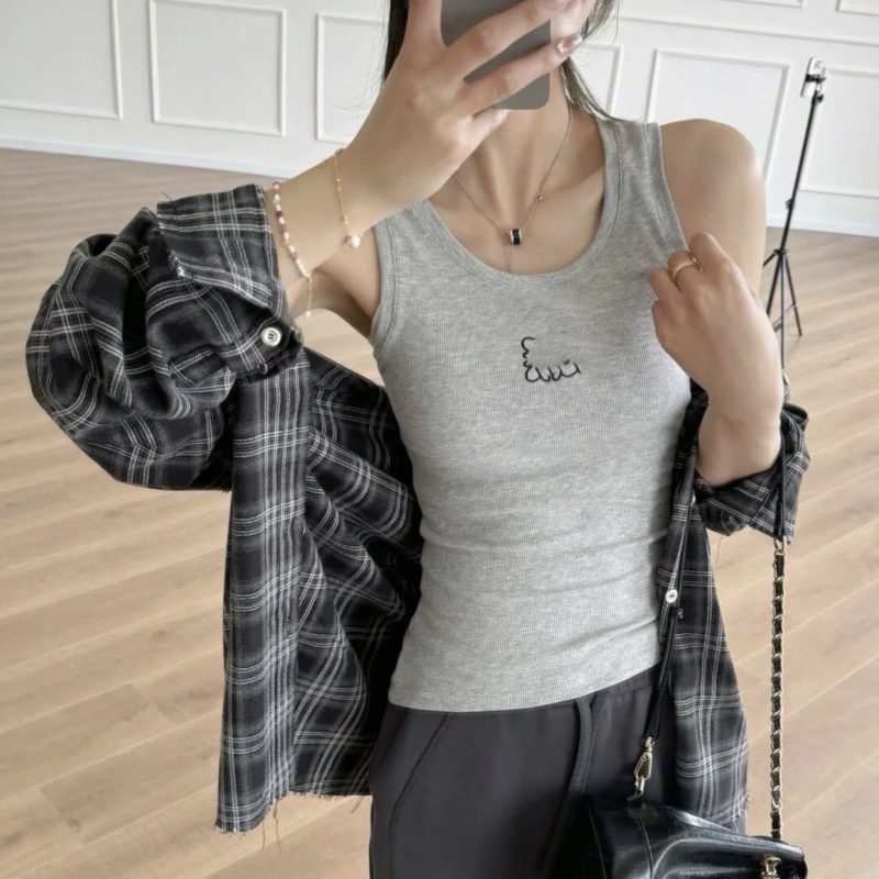 Italian LW Summer New Embroidered Knitted Sleeveless Women's Vest Sling Tight Inner All-match Micro-blemish