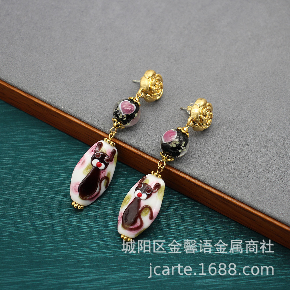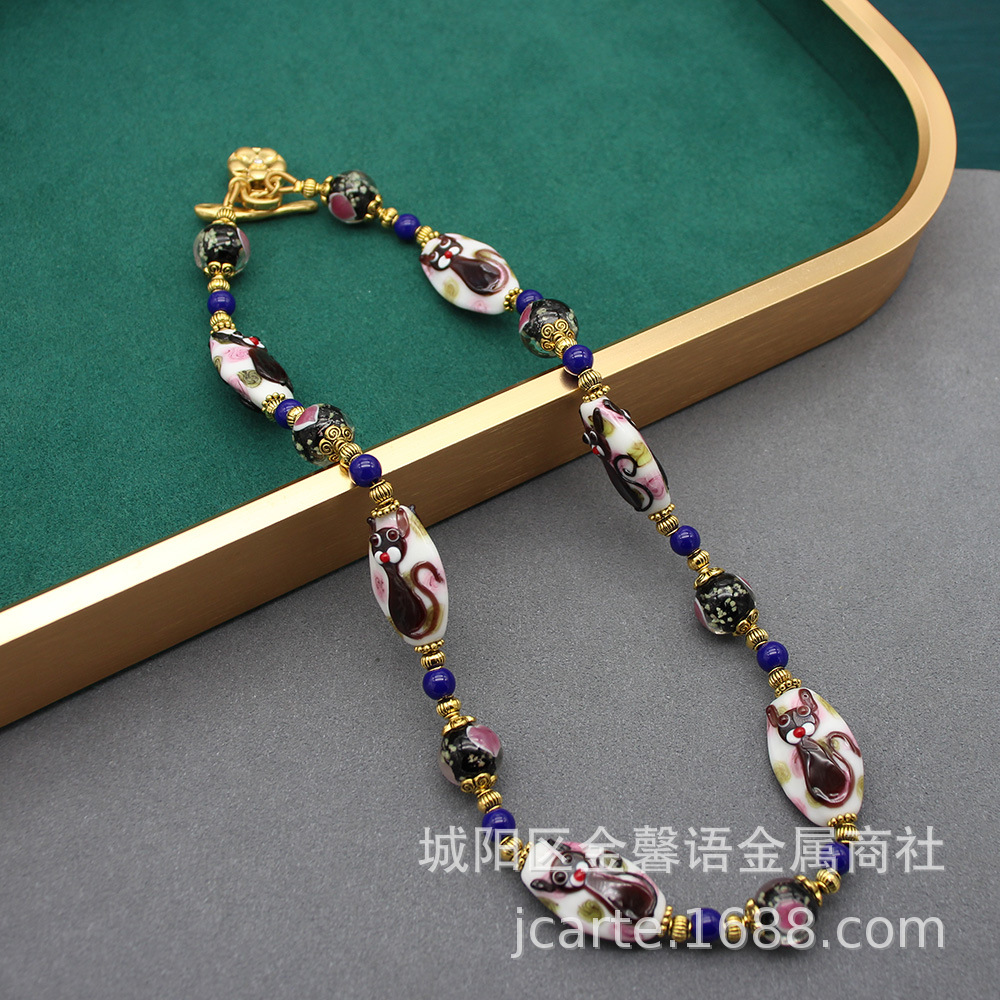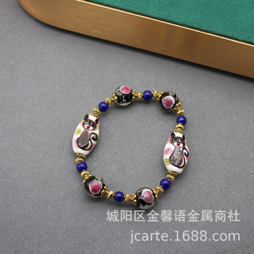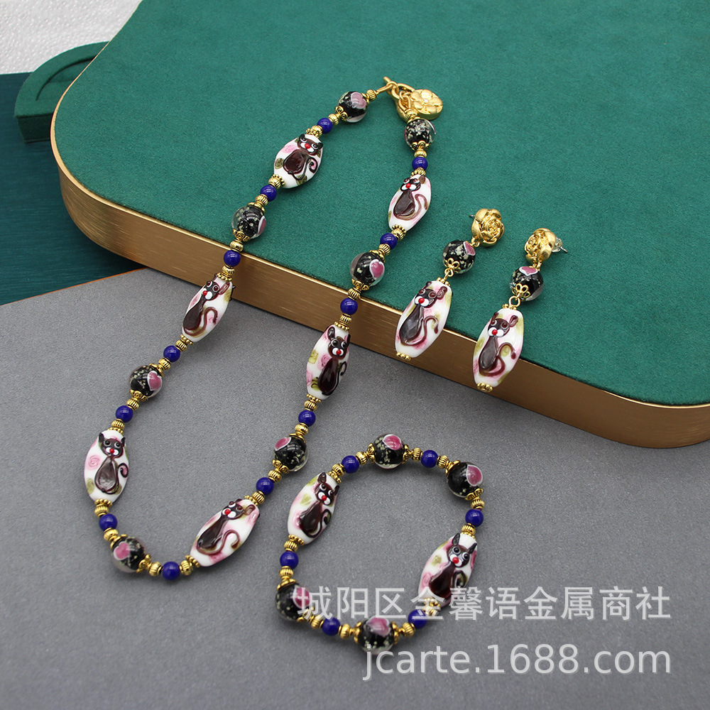 | nameOriginal | Italian Murano Cake Glaze Animal Cat Glaze Bracelet Necklace Earrings suit Cute Medieval Jewelry |