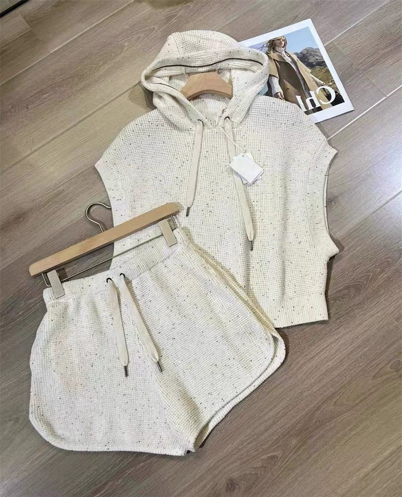 Italian sequined crew neck ribbed cotton knit suit