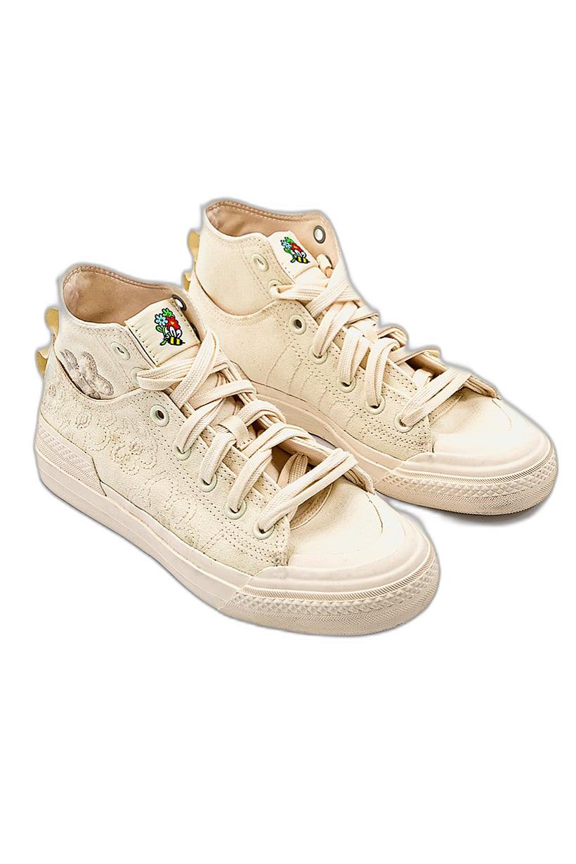 This product is suitable for both men and women. It has a lightly padded insole for added comfort and a lace-up closure for a secure fit. The rubber sole provides durability, and the closed toe design makes it versatile for various occasions, especially sports. The shoe is made of textile material and comes in an ivory color. It does not feature any specific character design.