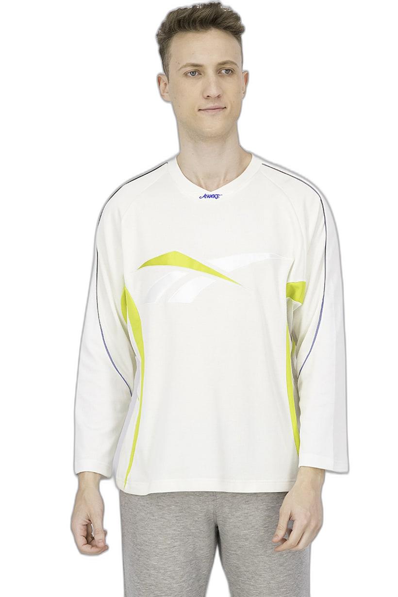 | nameOriginal | Men Regular Fit Long Sleeve Brand Logo Hookey Jersey, Ivory and White |