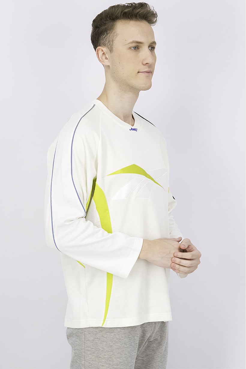 | sub_Categories | Men Clothing, Sportswear, men regular fit long sleeve brand logo hookey jersey ivory and white |