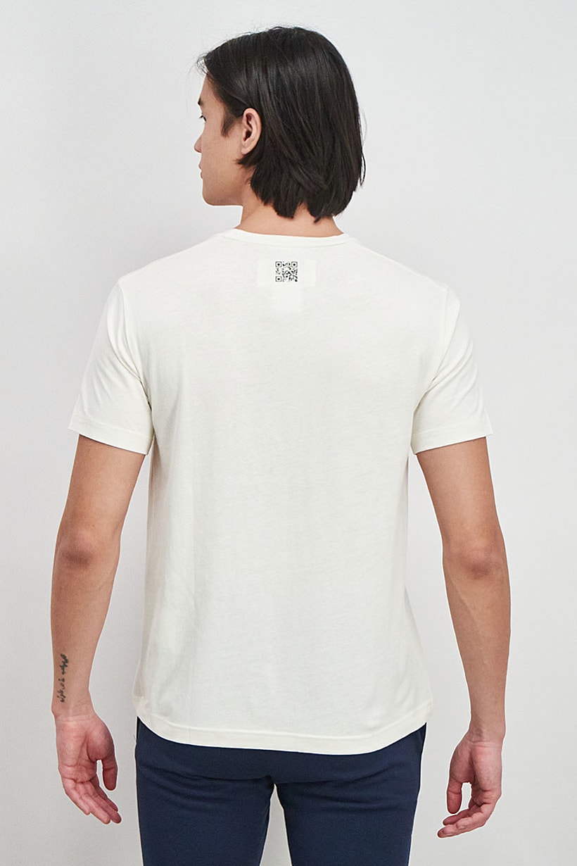 This product is easy to care for as it is machine washable. The size displayed is in international sizing and it features short sleeves with a crew neckline and collar. Made from 100% cotton, it has an embroidered logo pattern and a pullover closure. The color family is ivory and it has a sportswear fit with a light thickness, making it suitable for training. This is a sportswear t-shirt that is perfect for your active lifestyle.