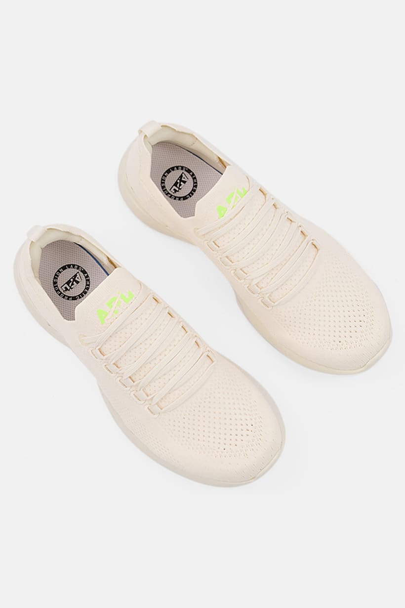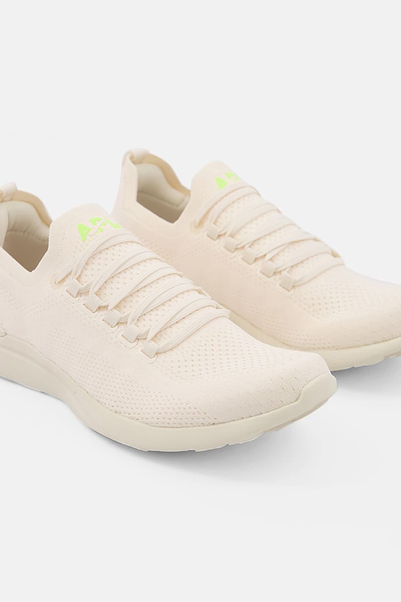 Ivory/Neon Green Women’s Running Shoes with Lace-Up Techloom Breeze Design.