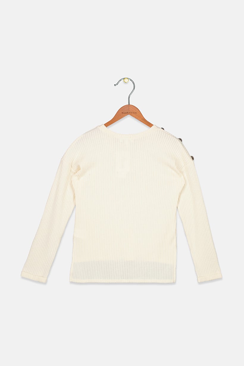 Ivory Textured Knit Sweater for Girls with Long Sleeves.