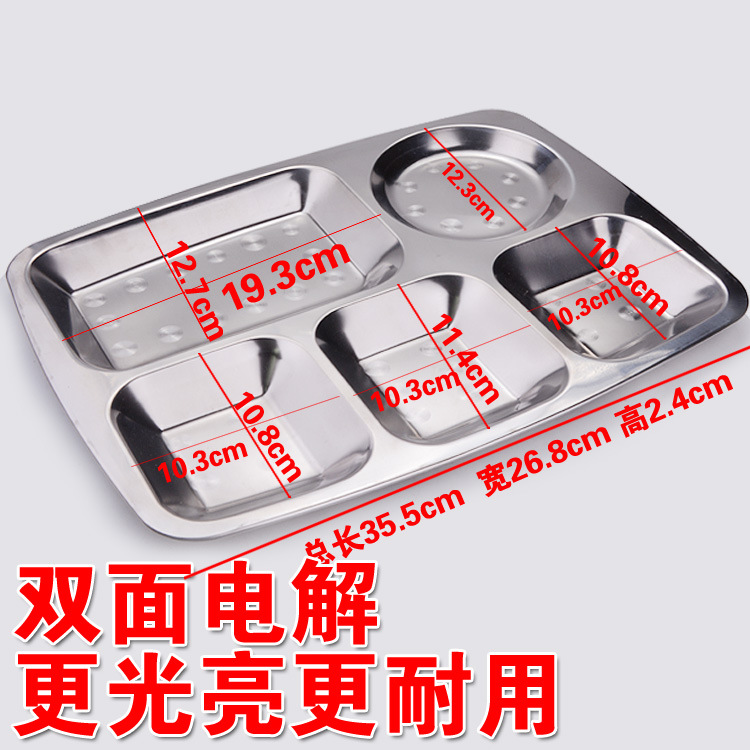 | nameOriginal | IYR7304 stainless steel plate thickened rectangular adult fast food plate five grid six grid student compartment commercial lunch box |