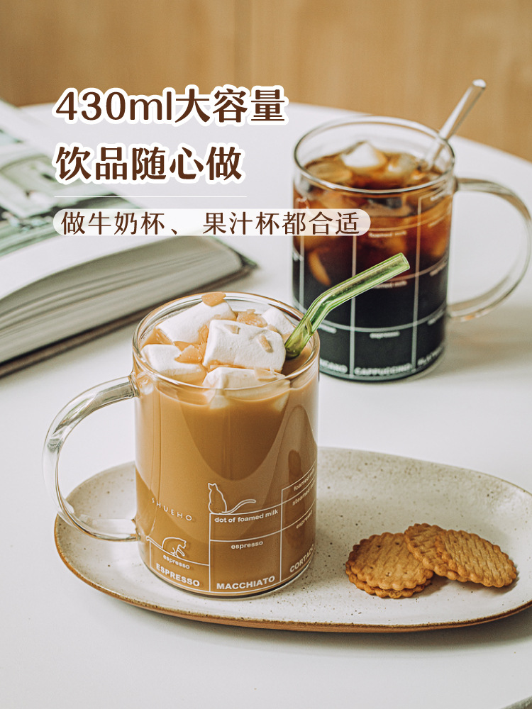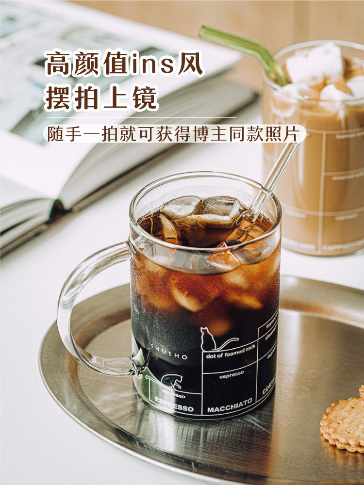 | nameOriginal | IZ4A cat coffee cup scale cup water Cup ins transparent cup mug hanging ear coffee cold extraction glass |