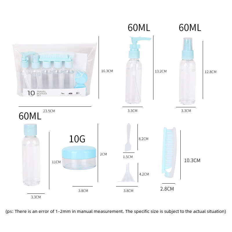 | nameOriginal | Izhilian travel empty bottle suit 10-piece bag portable lotion perfume cosmetics sub-bottle pp plastic bottle |