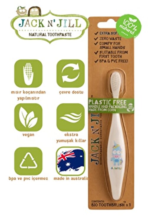 Jack N’Jill children’s toothbrushes body is meticulously manufactured from tamemen corn cob.