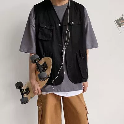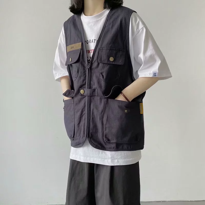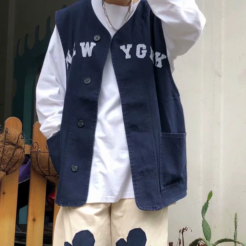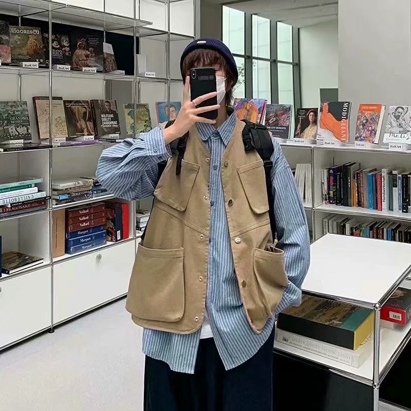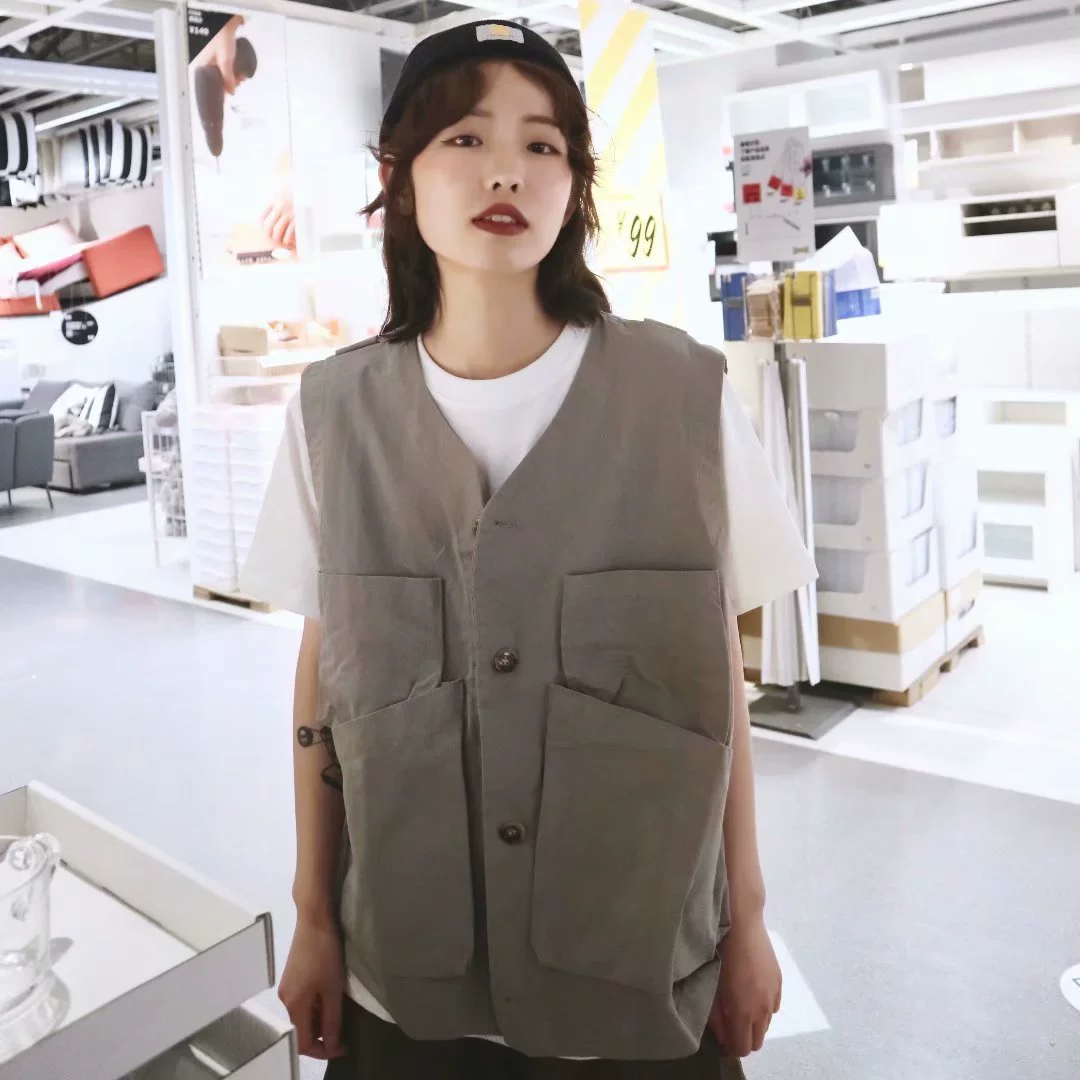 | nameOriginal | Jacket women's v-neck multi-pocket casual denim vest |