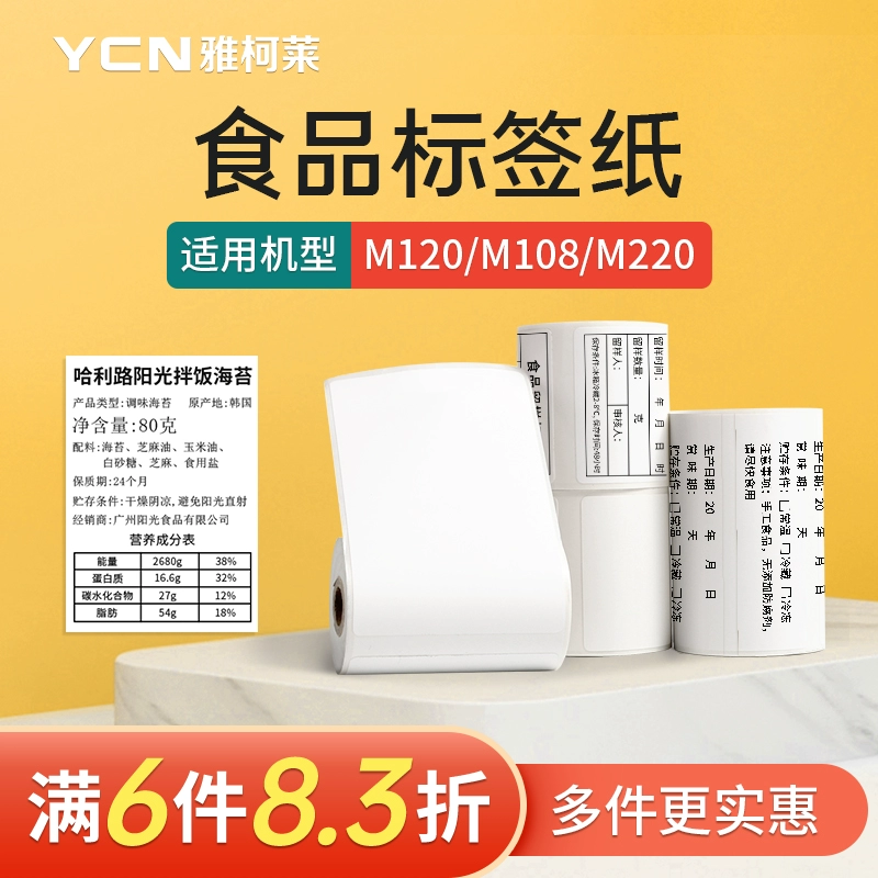 | nameOriginal | Jacola M102/M108/M220 white label paper food production date bakery mooncake baking shelf life ingredients sample three-proof self-adhesive thermal printing paper self-adhesive waterproof |