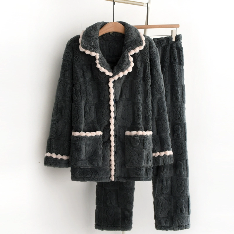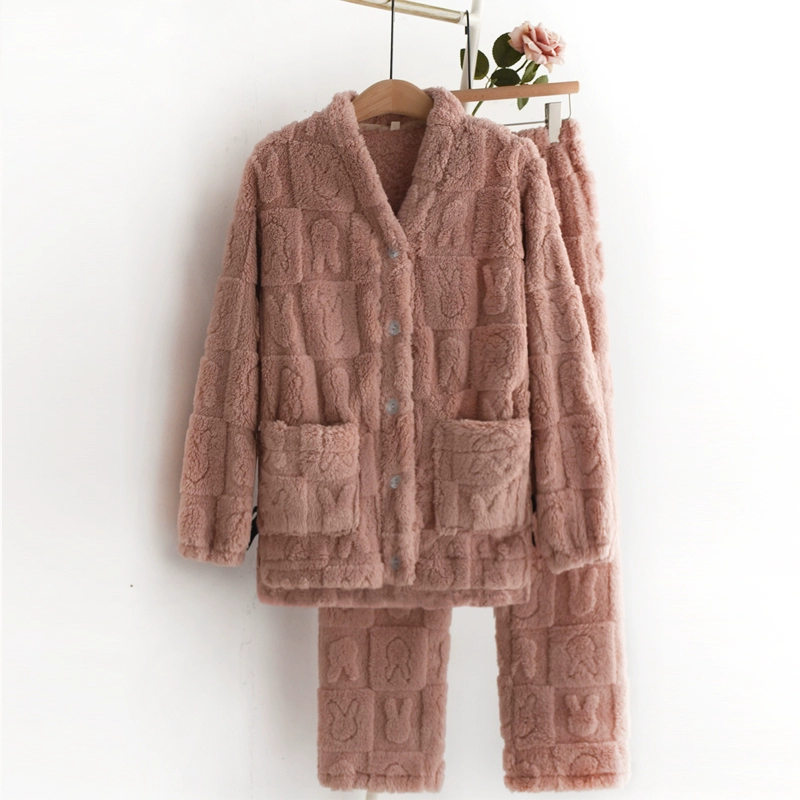 | nameOriginal | Jacquard bunny pajamas for men and women in autumn and winter flannel thickened warm plus velvet long-sleeved couple home wear set |