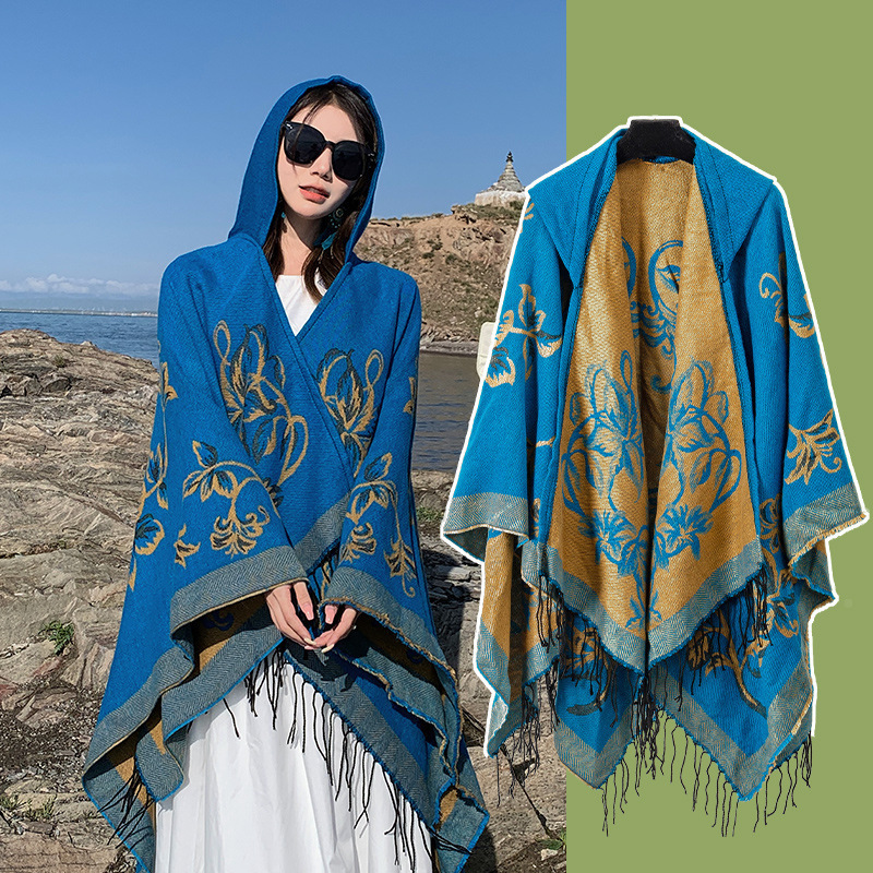 | nameOriginal | Jacquard Ethnic Style Split Towel Cape Shawl Women's Autumn and Winter Thickened Warm Scarf Yunnan Travel Hat Cloak |
