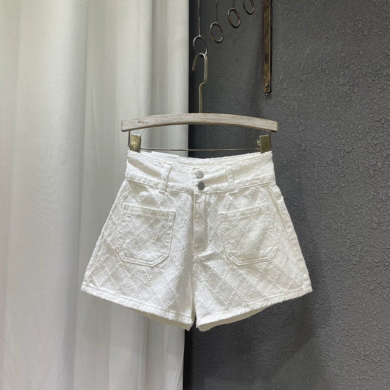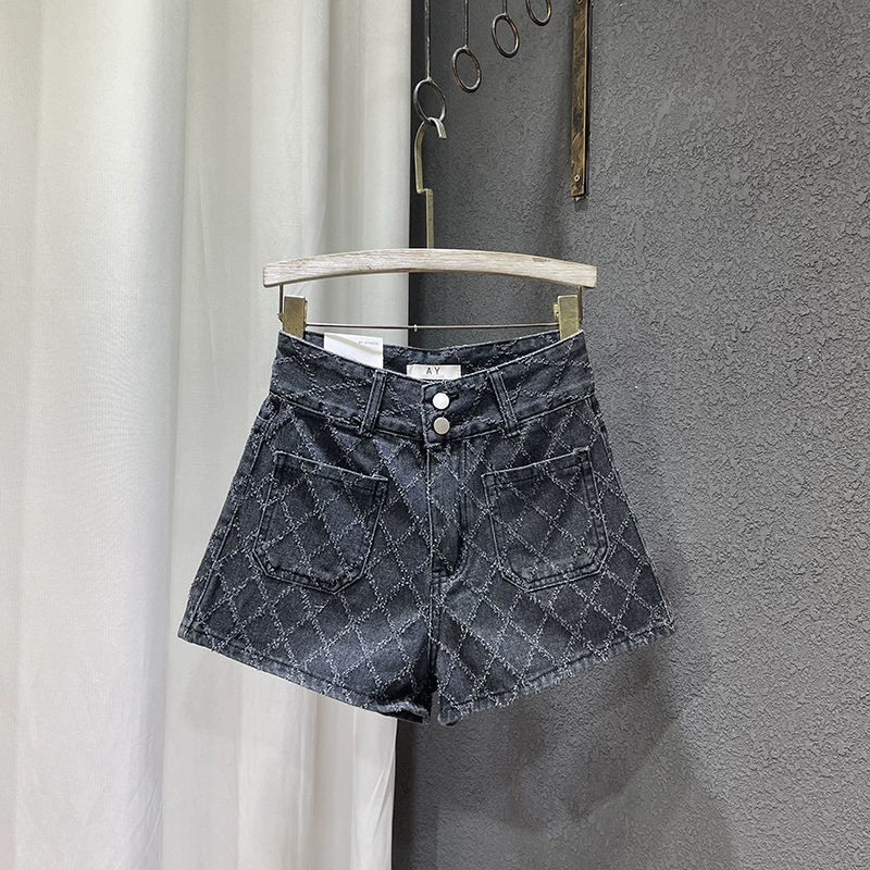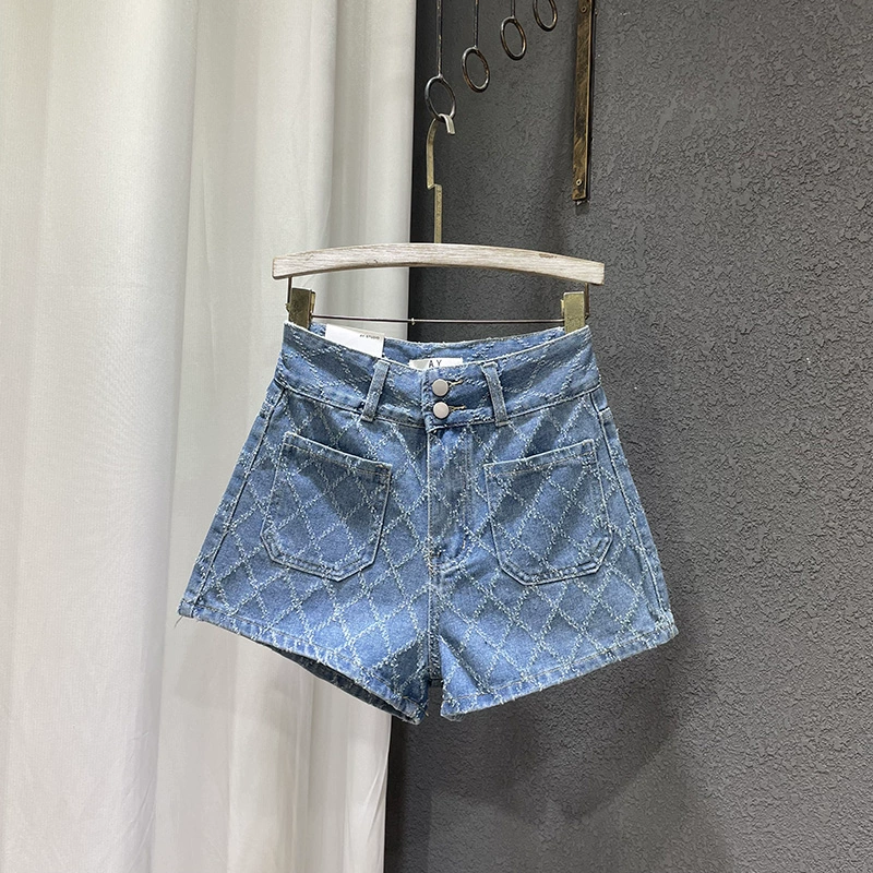Jacquard rhombus summer high-waisted a-line denim shorts