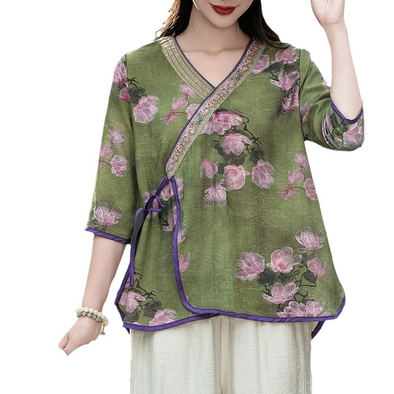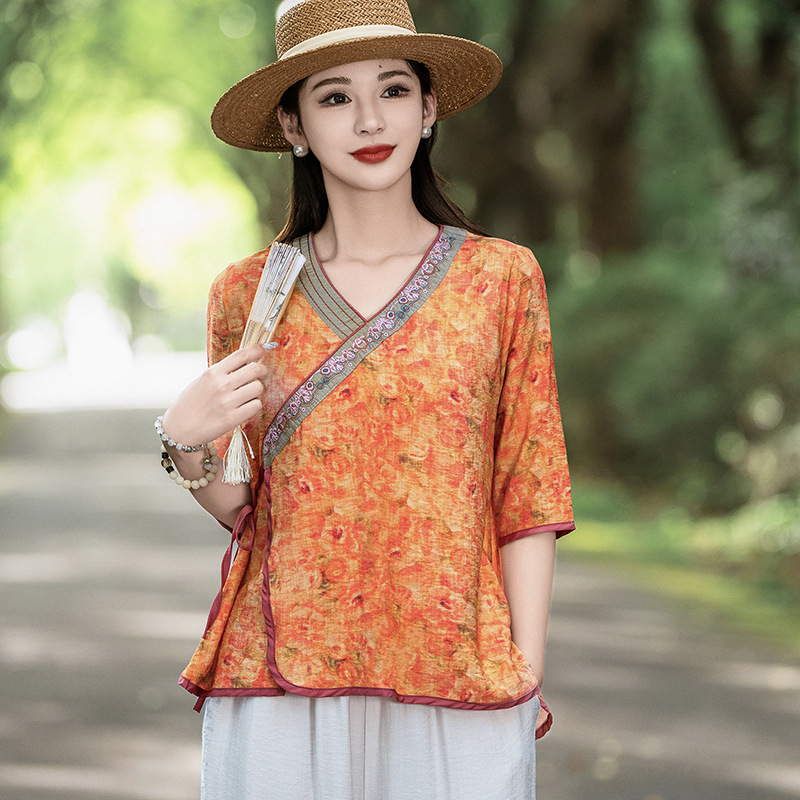 Jacquard Shirt Women’s Summer Thin Fashionable plus size Pullover Chinese Style National Style Vintage Embroidered Tang Suit High-rise Shirt