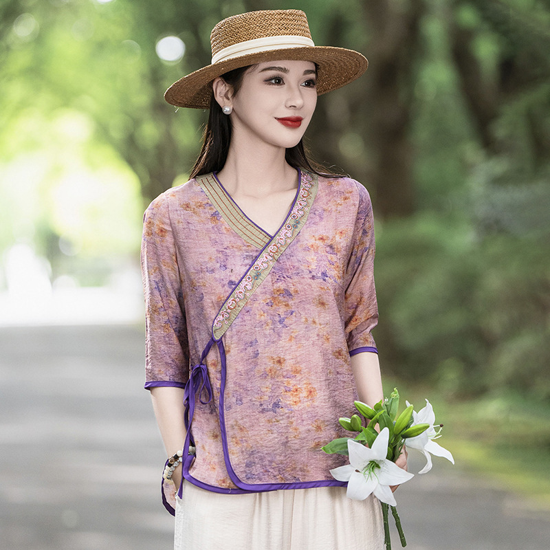 Jacquard Shirt Women's Summer Thin Fashionable plus size Pullover Chinese Style National Style Vintage Embroidered Tang Suit High-rise Shirt