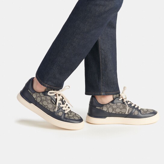 Crafted from a blend of organic cotton and recycled polyester, this Coach product features a signature jacquard and leather upper, along with a comfortable fabric lining and footbed. The rubber outsole provides reliable traction, while the lace-up closure ensures a secure fit. Style No. CI079.