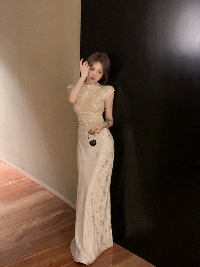 Jacquard Women’s Summer Satin Fishtail Two-piece T-Shirt