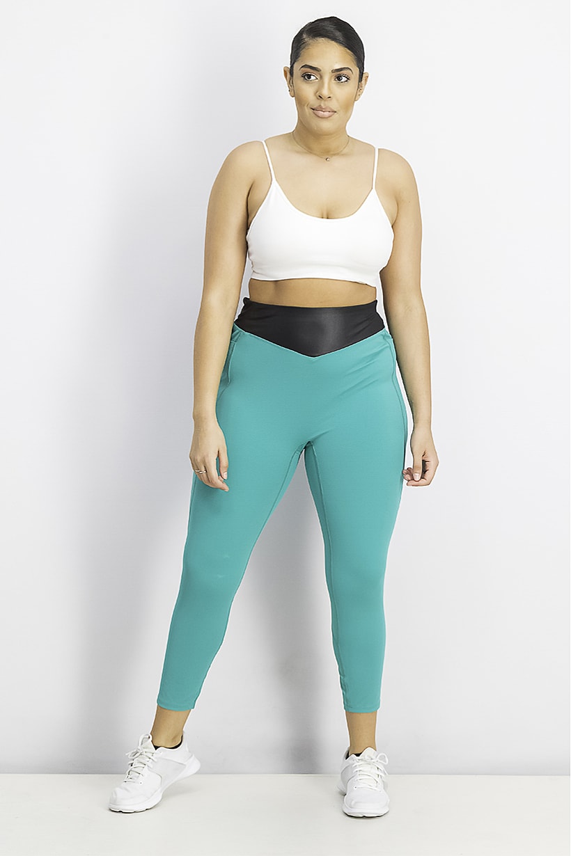 Women Clothing, Sportswear, women sports fit contrast waist pull on legging jade black