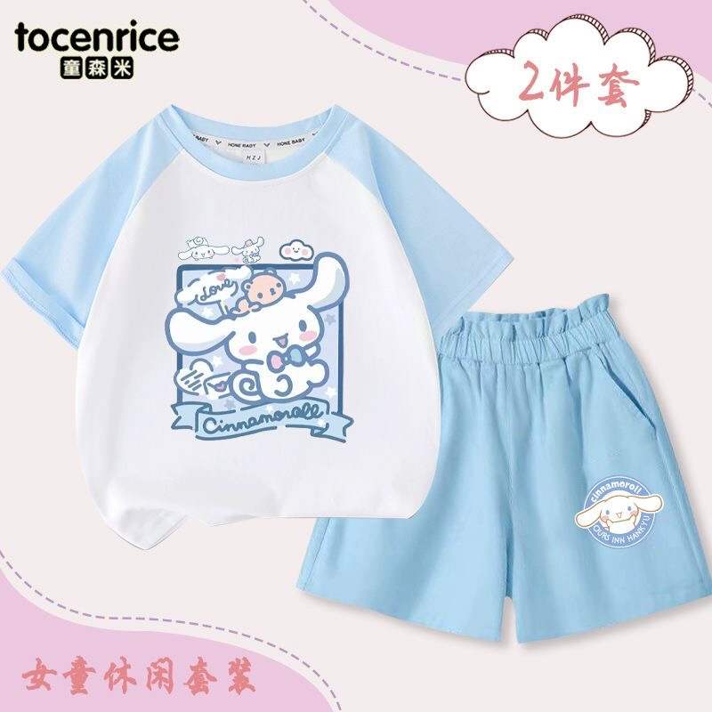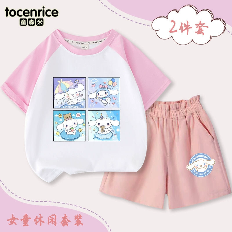 | nameOriginal | Jade Dog Girls Short Sleeve T-Shirt Set 2024 New Summer Medium and Big Children's Raglan Top Shorts Two-piece Set Trendy 7 |